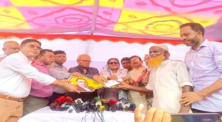 মোস্তাকিন আলী দম্পত্তির হাতে আনুষ্ঠানিকভাবে তারেক রহমানের পক্ষ থেকে ‘ঘানির জন্য গরু’ কিনতে নগদ অর্থ এবং তার পরিবারকে স্বাবলম্বী করতে ব্যাটারিচালিত দুটি অটো ভ্যানের চাবি তুলে দেন অ্যাডভোকেট রুহুল কবির রিজভী।