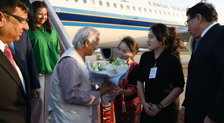 নিউজ ডেস্ক: চার দিনের রাষ্ট্রীয় সফরে চীনে পৌঁছেছেন প্রধান উপদেষ্টা অধ্যাপক মুহাম্মদ ইউনূস। বুধবার (২৬ মার্চ) বাংলাদেশ সময় বিকেল ৪টা ১৫ মিনিটে তাকে বহনকারী চায়না সাউদার্ন এয়ারলাইন্সের বিশেষ ফ্লাইটটি দেশটির হাইয়ান প্রদেশের কিয়োংহাই বো'আও আন্তর্জাতিক বিমানবন্দরে অবতরণ করে।