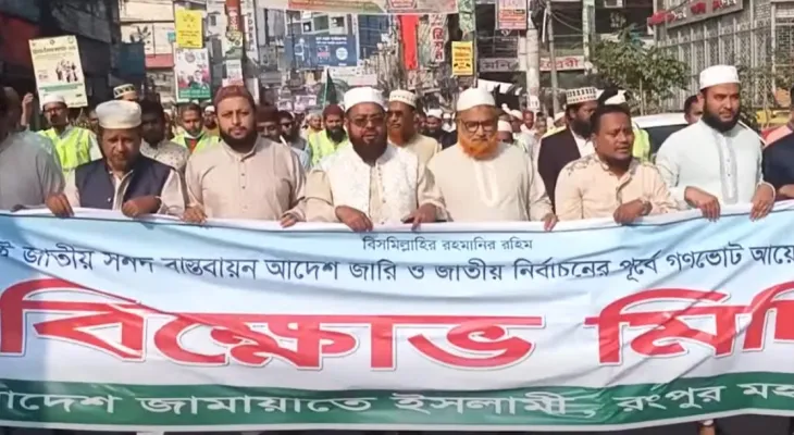 জুলাই সনদ বাস্তবায়ন ও নভেম্বরে গণভোটসহ ৫ দফা দাবিতে রংপুর মহানগর জামায়াতের বিক্ষোভ মিছিল