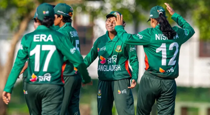 শেষ ম্যাচে জিতে সিরিজ ২-২ সমতায় শেষ করায় উচ্ছ্বসিত বাংলাদেশ অনূর্ধ্ব-১৯ নারী দলের খেলোয়াড়রা।