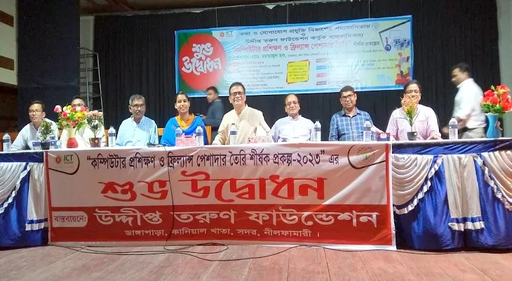 স্টাফ রিপোর্টার,নীলফামারী॥ নীলফামারীতে বিনামূল্যে কম্পিউটার প্রশিক্ষণ ও ফ্রিল্যান্স পেশাদার তৈরি প্রকল্পের উদ্বোধন করা হয়েছে। তথ্য ও যোগাযোগ প্রযুক্তি বিভাগের সহযোগিতায় স্বেচ্ছাসেবি সংগঠন উদ্দীপ্ত ফাউন্ডেশন এ কার্যক্রম বাস্তবায়ন করছে।