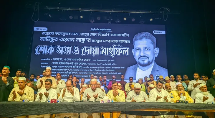 এরপর সদ্য প্রয়াত রংপুর জেলা বিএনপির সদস্য সচিব আনিছুর রহমান লাকুর শোক সভা ও দোয়া মাহফিলে অংশ নেন। সেখানে প্রধান অতিথি ছিলেন বিএনপির স্থায়ী কমিটির সদস্য ডা: এ জেড এম জাহিদ হোসেন, প্রধান বক্তা ছিলেন বিএনপির যুগ্ম মহাসচিব হাবিব উন নবী খান সোহেল, বিশেষ অতিথি অধ্যক্ষ আসাদুল হাবীব দুলু, সহ-সাংগঠনিক সম্পাদক আব্দুল খালেক, অধ্যাপক আমিনুল ইসলাম। সভাপতিত্ব করেন জেলা বিএনপির আহবায়ক সাইফুল ইসলাম। এছাড়াও বক্তব্য রাখেন মহানগর বিএনপির আহবায়ক সামসুজ্জামান সামু, সদস্য সচিব এডভোকেট মাহফুজ উন নবী ডনসহ অন্যান্য নেতৃবৃন্দ।