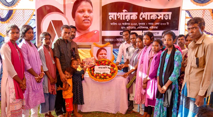 উল্লেখ্য, সাঁওতাল নেত্রী প্রিসিলা মুরমু গত ১৫ অক্টোবর বুধবার মহাখালী ক্যান্সার হাসপাতালে চিকিৎসাধীন অব¯’ায় মারা যায়।