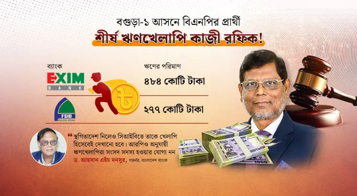 নিউজ ডেস্ক: জনসেবার অঙ্গীকার নিয়ে ভোটের মাঠে নামলেও কাজী রফিকুল ইসলামের পিছু ছাড়ছে না ‘শীর্ষ ঋণখেলাপি’র তকমা। ফার্স্ট সিকিউরিটি ও এক্সিম ব্যাংকের শত শত কোটি টাকা বছরের পর বছর অনাদায়ী রেখে তিনি এখন বগুড়া-১ (সারিয়াকান্দি–সোনাতলা) আসনের ভোটারদের দ্বারে দ্বারে। রাজনৈতিক প্রভাব আর আদালতের স্থগিতাদেশে এতদিন খেলাপি পরিচয় আড়াল করে রাখলেও, বর্তমান পরিবর্তিত পরিস্থিতিতে ব্যাংকিং খাতের কঠোর নিয়ন্ত্রণ তার নির্বাচনী ভাগ্য নির্ধারণে নতুন সমীকরণ তৈরি করেছে। প্রশ্ন উঠেছে—৭৬১ কোটি টাকার খেলাপি ঋণ নিয়ে তিনি কি আদৌ পারবেন সংসদের চৌকাঠ মাড়াতে?
