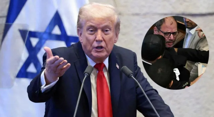 নিউজ ডেস্ক: মার্কিন প্রেসিডেন্ট ডোনাল্ড ট্রাম্প ভাষণ দেওয়ার সময় ইসরাইলের পার্লামেন্ট নেসেটে হট্টগোল বেধে যায়। এতে বাধাগ্রস্ত হয় ট্রাম্পের ভাষণ। কিছুক্ষণ থেমেও থাকে। খবর ব্রিটিশ গণমাধ্যম বিবিসি’র।