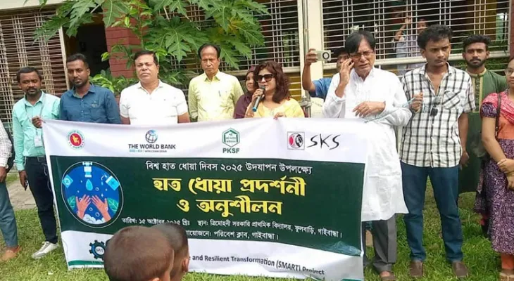 গাইবান্ধা প্রতিনিধি: হাত ধোয়ার নায়ক হোন’ এই প্রতিপাদ্যকে সামনে রেখে গাইবান্ধায় বিশ্ব হাত ধোয়া দিবস পালিত হয়েছে। দিবসটি উপলক্ষে বুধবার গাইবান্ধা সদর উপজেলার ত্রিমোহিনী সরকারি প্রাথমিক বিদ্যালয়ে হাত ধোয়া প্রদর্শনী ও অনুশীলন অনুষ্ঠিত হয়। গাইবান্ধা পরিবেশ ক্লাব এই অনুষ্ঠানের আয়োজন করে।
