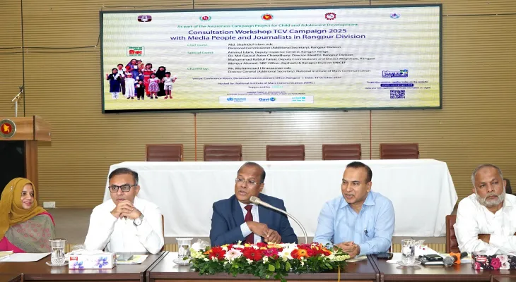 নিউজ ডেস্ক: শিশুদের সুস্বাস্থ্য নিশ্চিতে টিকা গ্রহণের সংস্কৃতি গড়ে তুলতে হবে। টিকা গ্রহণের মাধ্যমে শিশুদের রোগ প্রতিরোধ ক্ষমতা বৃদ্ধি পায়। একটি রাষ্ট্রের মূল ভিত্তি হলো সুস্থ, শিক্ষিত ও সচেতন নাগরিক। শনিবার (১৮ই অক্টোবর) সকালে রংপুর বিভাগীয় কমিশনারের সম্মেলনকক্ষে টাইফয়েড টিকাদান কার্যক্রম নিয়ে গণমাধ্যমকর্মীদের সাথে বিভাগীয় পর্যায়ের পরামর্শমূলক কর্মশালায় জাতীয় গণমাধ্যম ইনস্টিটিউট-এর মহাপরিচালক মুহম্মদ হিরুজ্জামান সভাপতির বক্তৃতায় এসব কথা বলেন। জাতীয় গণমাধ্যম ইনস্টিটিউটের আয়োজনে এবং রংপুর জেলা ও আঞ্চলিক তথ্য অফিসের সহযোগিতায় কর্মশালাটি অনুষ্ঠিত হয়।