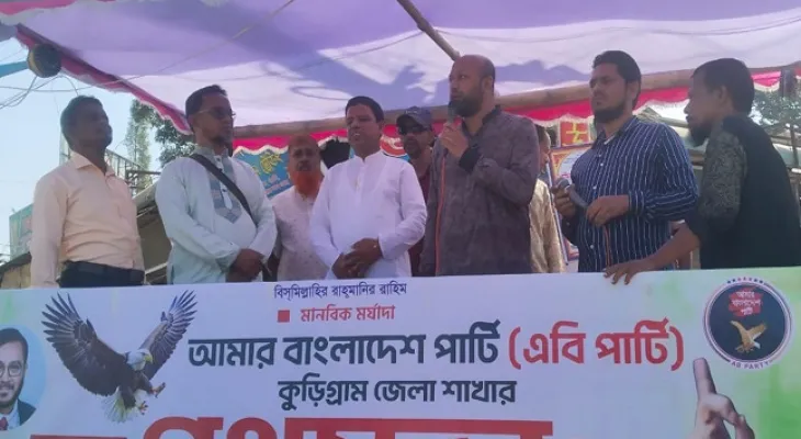 মঙ্গলবার(২১অক্টোবর) সকাল সাড়ে ১০টায় কুড়িগ্রামের রাজারহাট বাজারের ট্রাফিক মোড় এলাকায় এক পথসভা এবি পার্টির রুপকার ও সাধারণ সম্পাদক ব্যারিস্টার আসাদুজ্জামান ফুয়াদ এসব কথা বলেন।