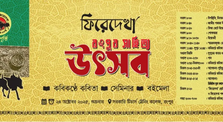 “ফিরেদেখা”-এর যুগপূর্তি উপলক্ষে রংপুর সাহিত্য উৎসব ও বইমেলা শুক্রবার