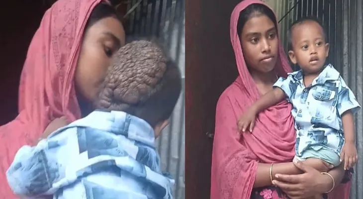 কুড়িগ্রাম প্রতিনিধি:  আর দশটি শিশুর মত খাচ্ছে-দাচ্ছে, খেলছে এবং ছুটোছুটি করছে ১৫ মাস বয়সি শিশু সন্তান সিফাত। জন্মের পর তার মাথার পিছনে জরুলের মত ছোট্ট একটি কালো দাগ সবার নজরে আসে। চিকিৎসকদের কাছে গেলে তারা অভয় দিয়ে বলেছিলেন বয়স বাড়ার সাথে সব ঠিক হয়ে যাবে! কিন্তু ঠিক তো হয়নি, উল্টো বয়স বাড়ার সাথে সাথে তার মাথার পিছনের বিরল ধরণের রোগটি ক্রমান্বয়ে বিস্তার লাভ করা শুরু করে। বিগত ১৫ মাসেই তার মাথার পিছনটি সম্পূর্ন আক্রান্ত হয়ে গেছে। ফলে আতংকে রয়েছে পরিবারটি।