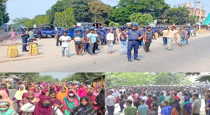 স্টাফরিপোর্টার,নীলফামারী॥ কয়েক দিনের আন্দোলনের জের ধরে উত্তাল হয়ে উঠেছে নীলফামারীর উত্তরা রপ্তানি প্রক্রিয়াকরণ অঞ্চল (ইপিজেড)। বেতন-বোনাসসহ বিভিন্ন দাবিতে টানা আন্দোলনে নামেন শ্রমিকরা। প্রতিষ্ঠানগুলো বন্ধ ঘোষণার পর সোমবার (২৭ অক্টোবর) সকালে ইপিজেডের মূল ফটকের সামনে বিক্ষোভ শুরু করেন চারটি প্রতিষ্ঠানের কর্মরত শ্রমিকরা। ফলে ইপিজেড এলাকায় পরিস্থিতি উত্তপ্ত হয়ে ওঠে। খবর পেয়ে আইনশৃঙ্খলা বাহিনী ঘটনাস্থলে পৌঁছে পরিস্থিতি নিয়ন্ত্রণে আনে।