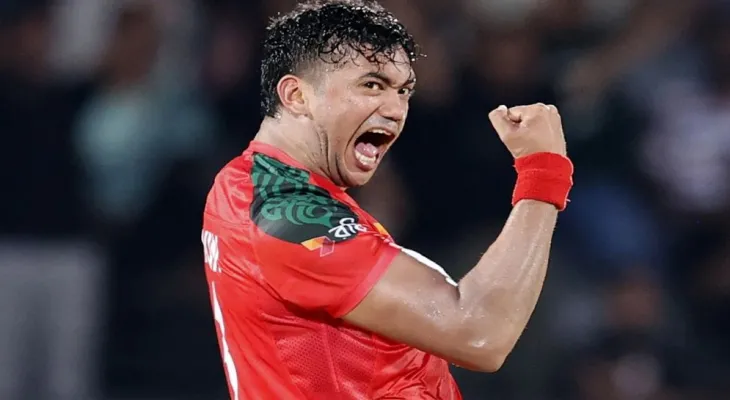আগের ওভারে ১৭ রান খরচ করলেও ১৩তম ওভারে বল করতে এসে মাত্র ২ রান খরোয় ক্যারিবীয় টপঅর্ডার দুই ব্যাটসম্যানকে সাজঘরে ফেরান তাসকিন।
