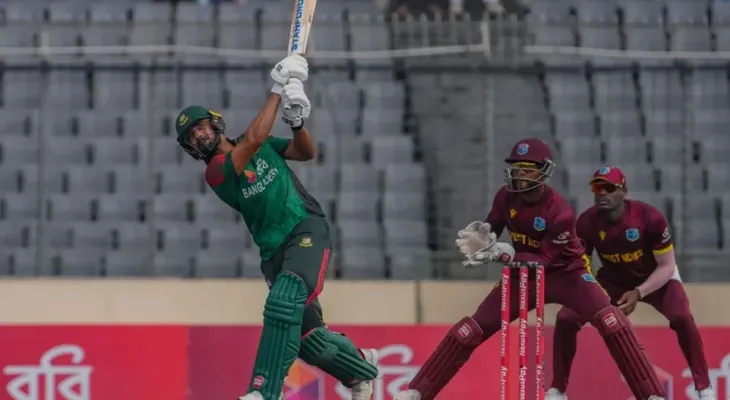 নিউজ ডেস্ক: তিন ম্যাচ টি-টোয়েন্টি সিরিজের প্রথম ম্যাচে ওয়েস্ট ইন্ডিজের দেয়া ১৬৬ রানের লক্ষ্যে ব্যাট করতে নেমে চাপে বাংলাদেশ। উড়ন্ত সূচনার পর হঠাৎ ছন্দপতনে দলীয় ৫৭ রানের মাথায় ৫ উইকেট হারিয়েছে বাংলাদেশ।