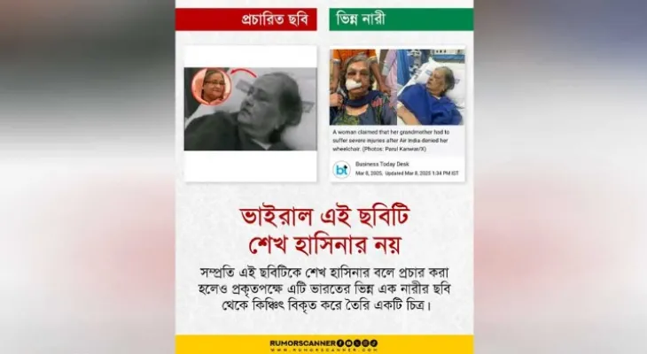 তবে ছবিটির সত্যতা যাচাইয়ের পর সংশ্লিষ্ট কর্তৃপক্ষ নিশ্চিত করেছে যে এটি সম্পূর্ণ মিথ্যা ও বিভ্রান্তিকর তথ্য। ছবিটি আসলে শেখ হাসিনার নয়, বরং প্রতিবেশী দেশ ভারতের ভিন্ন এক নারীর। প্রযুক্তির অপব্যবহার কিংবা উদ্দেশ্যপ্রণোদিত ভুল ব্যাখ্যার মাধ্যমে এই ছবিটি বাংলাদেশের অন্যতম শীর্ষ রাজনৈতিক ব্যক্তিত্বের ছবি হিসেবে প্রচার করা হচ্ছিল। এই ধরনের মিথ্যা দাবি রাজনৈতিক ফায়দা লোটার চেষ্টা নাকি শুধুমাত্র মনোযোগ আকর্ষণ করার কৌশল, তা নিয়ে প্রশ্ন উঠেছে।