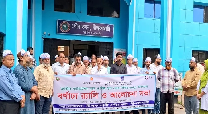 স্টাফরিপোর্টার,নীলফামারী॥ নীলফামারীতে জাতীয় স্যানিটেশন মাস ও বিশ্ব হাতধোয়া দিবস পালিত হয়েছে। নীলফামারী পৌরসভার আয়োজনে বৃহস্পতিবার(৩০ অক্টোবর) সকাল সাড়ে ১০টার দিকে এ উপলক্ষে একটি শোভাযাত্রা শহরের প্রধান সড়ক প্রদক্ষিণ শেষে পৌর কার্যালয়ের সামনে আলোচনা সভায় মিলিত হয়।
