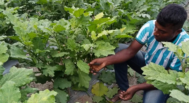 দিনাজপুরের ফুলবাড়ী উপজেলার বেতদিঘি ইউনিয়নের কুশলপুর গ্রামের তিন বন্ধু একেএম আরিফ, নুরুজ্জামান ও আজমল হক। ব্যক্তিগতভাবে কৃষিকাজে যুক্ত থাকলেও, এবার প্রথমবারের মতো যৌথভাবে ৫৩ শতক জমিতে আধুনিক মালচিং পদ্ধতিতে ঢোপা জাতের বেগুন চাষ করেছেন তারা। জমি প্রস্তুত, চারা উৎপাদন থেকে শুরু করে সার ও সেচ—সবকিছুই করেছেন নিজেদের ব্যবস্থাপনায়। খরচ হয়েছে প্রায় ৬০ থেকে ৬৫ হাজার টাকা। সপ্তাহখানেকের মধ্যেই তারা বেগুন হারভেস্ট শুরু করবেন। আর সবকিছু ঠিক থাকলে দেড় থেকে দুই লক্ষ টাকার বেগুন বিক্রির আশা করছেন তিন বন্ধু।