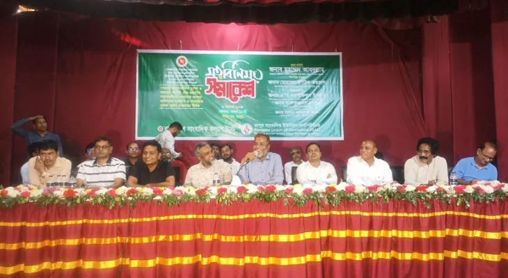 শনিবার ( 8 নভেম্বর)  রংপুর টাউন হলে তথ্য ও সম্প্রচার মন্ত্রণালয়ের বাংলাদেশ সাংবাদিক কল্যাণ ট্রাস্টের২০২৫-২০২৬ অর্থবছরের অনুদানের চেক বিতরণ উপলক্ষে সাংবাদিকদের আর্থিক সুরক্ষা ও কল্যাণে করণীয় এবং প্রস্তাবিত সংশোধনীসহ গণমাধ্যম সংস্কার কমিশনের সুপারিশ ও সাংবাদিক সুরক্ষা আইন বাস্তবায়ন’  শীর্ষক মতবিনিময় ও সমাবেশে  প্রধান অতিথির বক্তব্যে এসব কথা বলেন তিনি। রংপুর সাংবাদিক ইউনিয়ন-আরপিইউজে ও  বাংলাদেশ সাংবাদিক কল্যান ট্রাস্টের যৌথ উদ্যোগে বেলা ১২ টা থেকে বিকেল ৪ টা পর্যন্ত এই সমাবেশে তিনশতাধিক গণমাধ্যম কর্মী অংশ নেন। রংপুর জেলা প্রশাসক মোহাম্মদ রবিউল ফয়সালের সভাপতিত্বে ও আরপিইউজে সাধারণ সম্পাদক সরকার মাজহারুল মান্নানের সঞ্চালনায় এতে বিশেষ অতিথির বক্তব্য রাখেন ট্রাস্টের উপ-পরিচালক (অর্থ ও প্রশাসন) এ বি এম রফিকুল ইসলাম, অতিরিক্ত জেলা প্রশাসক (রাজস্ব) আবু সাঈদ,আরপিইউজে সভাপতি সালেকুজ্জান সালেক।