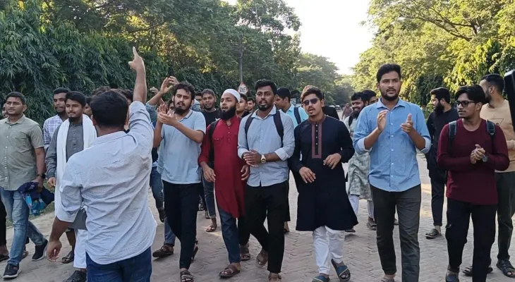 মিছিলে শিক্ষার্থীরা ‘এ মুহূর্তে খবর এলো খুনি হাসিনার ফাঁসি হলো’, ‘দিল্লি থেকে ঢাকায় আন, ফাঁসিতে ঝুলিয়ে দাও টান’, ‘আবু সাঈদ-মুগ্ধ শেষ হয়নি যুদ্ধ’, ‘ইনকিলাব ইনকিলাব, জিন্দাবাদ জিন্দাবাদ’ স্লোগানে মুখরিত করে তোলে শহীদ আবু সাঈদ চত্বর।