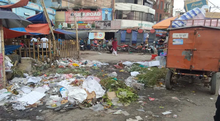 রংপুর সিটি বাজার সংলগ্ন প্রধান সড়কে বর্জ্য ডাম্পিং