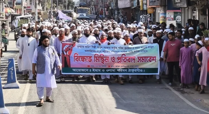 বৃহস্পতিবার (২৭ নভেম্বর) দুপুরে ঠাকুরগাঁও মডেল মসজিদের সামনে থেকে একটি বিশাল বিক্ষোভ মিছিল বের হয়। মিছিলটি শহরের গুরুত্বপূর্ণ সড়ক প্রদক্ষিণ করে একই স্থানে এসে প্রতিবাদ সমাবেশে মিলিত হয়।