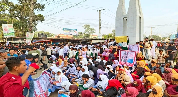 স্টাফরিপোর্টার,নীলফামারী॥ নীলফামারীর ডিমলা উপজেলার জেলা পরিষদ স্কুল এন্ড কলেজে চাঞ্চল্যকর ছুরিকাঘাতের ঘটনার প্রতিবাদে রবিবার(৩০ নভেম্বর) সকাল ১০টা থেকে জেলা পরিষদ স্কুল এন্ড কলেজসহ উপজেলার বিভিন্ন শিক্ষা প্রতিষ্ঠানের শিক্ষার্থীরা বিক্ষোভ মিছিল বের করে। মিছিলটি উপজেলার বিভিন্ন সড়ক প্রদক্ষিণ শেষে শহীদ মিনার চত্বরে এসে প্রতিবাদ সমাবেশে রূপ নেয়। সমাবেশে প্রায় এক হাজার শিক্ষার্থী অংশগ্রহণ করেন। শিক্ষার্থীদের পাশাপাশি সমাবেশে অভিভাবকও অংশ নেয়। সমাবেশে অংশ নেওয়া শিক্ষার্থীরা শিক্ষা প্রতিষ্ঠানে নিরাপদ পরিবেশ নিশ্চিত করা, হামলাকারীদের দ্রুত গ্রেপ্তার ও দৃষ্টান্তমূলক শাস্তির দাবি জানান। পাশাপাশি স্কুল ক্যাম্পাসে সহিংসতা ও অপরাধমূলক কর্মকান্ড বন্ধে কার্যকর ব্যবস্থা গ্রহণের আহ্বান জানান তারা। শিক্ষার্থীরা দুপুর ২টা থেকে বিকাল ৪টা পর্যন্ত শান্তিপূর্ণভাবে অবস্থান কর্মসূচি পালন করেন।