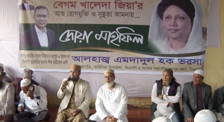 নিজস্ব প্রতিবেদক: রংপুরে বেগম খালেদা জিয়ার সুস্থতা কামনায় দোয়া মাহফিল হয়েছে। রবিবার বাদ আসরকাউনিয়া উপজেলার হারাগাছে নিজ বাসভবনে দোয়া মাহফিল করেন রংপুর-৪ (পীরগাছা-কাউনিয়া) আসনে বিএনপি মনোনিত প্রার্থী, সাবেক জেলা বিএনপির সভাপতি এমদাদুল হক ভরসা।