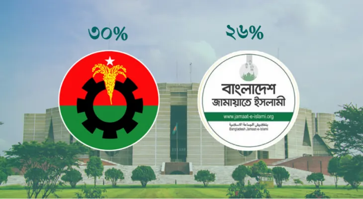 নিউজ ডেস্ক: আগামী সপ্তাহে জাতীয় সংসদ নির্বাচন অনুষ্ঠিত হলে ৩০ শতাংশ ভোটার বাংলাদেশ জাতীয়তাবাদী দল-বিএনপিকে ভোট দেবেন। জামায়াতে ইসলামীকে ভোট দেবেন ২৬ শতাংশ ভোটার। অর্থাৎ দুই দলের মধ্যে ব্যবধান মাত্র ৪ শতাংশ। মার্কিন ফেডারেল সরকারের অর্থায়নে রিপাবলিকান পার্টি-ঘনিষ্ঠ অলাভজনক প্রতিষ্ঠান ইন্টারন্যাশনাল রিপাবলিকান ইনস্টিটিউটের (আইআরআই) এক জরিপের ভিত্তিতে এই তথ্য জানিয়েছে।