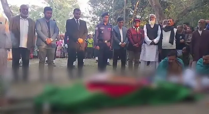 এর আগে, উপজেলা নির্বাহী অফিসার মনাব্বর হোসেন ও ওসি রুহুল আমিনের উপস্থিতিতে যোগেশচন্দ্র রায়ের মরদেহে গার্ড অফ অনার প্রদান করা হয়।