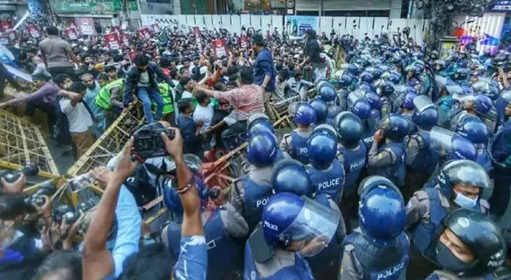 নিউজ ডেস্ক: রাজধানীতে জুলাই ঐক্যের ‘মার্চ টু ইন্ডিয়ান হাইকমিশন’ কর্মসূচিতে পুলিশ বাধা দিয়েছে। কর্মসূচি ঘিরে প্রগতি সরণিতে যান চলাচল বন্ধ হয়ে পড়ে।