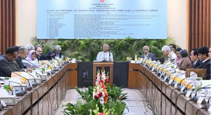 মঙ্গলবার রাজধানীর শেরে বাংলা নগরে পরিকল্পনা কমিশন চত্বরে অনুষ্ঠিত বৈঠকে প্রধান উপদেষ্টা ও একনেকের চেয়ারপারসন ড. মুহাম্মদ ইউনূস সভাপতিত্ব করেন। পরিকল্পনা উপদেষ্টা ওয়াহিদউদ্দিন মাহমুদ, পররাষ্ট্র উপদেষ্টা মো. তৌহিদ হোসেন, খাদ্য ও ভূমি উপদেষ্টা আলী ইমাম মজুমদার, সমাজকল্যাণ এবং মহিলা ও শিশু বিষয়ক উপদেষ্টা শারমীন এস মুরশিদ, স্বরাষ্ট্র ও কৃষি উপদেষ্টা লেফটেন্যান্ট জেনারেল (অব.) মো. জাহাঙ্গীর আলম চৌধুরী, শিল্প এবং গৃহায়ন ও গণপূর্ত উপদেষ্টা আদিলুর রহমান খান, বিদ্যুৎ, জ্বালানি ও খনিজ সম্পদ, সড়ক পরিবহন ও সেতু এবং রেলপথ উপদেষ্টা মুহাম্মদ ফাওজুল কবির খান, পরিবেশ, বন ও জলবায়ু পরিবর্তন এবং পানি সম্পদ উপদেষ্টা সৈয়দা রিজওয়ানা হাসান, স্বাস্থ্য ও পরিবার কল্যাণ উপদেষ্টা নূরজাহান বেগম এবং শিক্ষা উপদেষ্টা অধ্যাপক ড. চৌধুরী রফিকুল আবরারসহ সংশ্লিষ্ট ঊর্ধ্বতন সরকারি কর্মকর্তারা অংশ নেন।