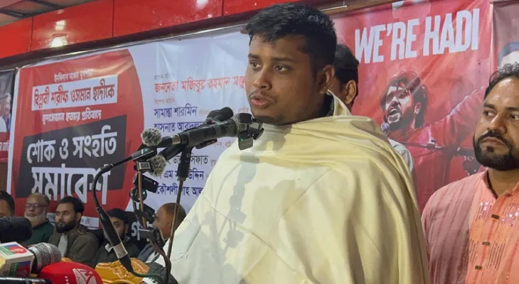 বুধবার (২৪ ডিসেম্বর) বিকেলে শহরের কিং কমিউনিটি সেন্টারে গণতান্ত্রিক সংস্কার জোট আয়োজিত বিপ্লবী ওসমান হাদিকে হত্যার প্রতিবাদে শোক ও সংহতি সমাবেশ বিশেষ অতিথির বক্তব্যে তিনি এসব কথা বলেন।