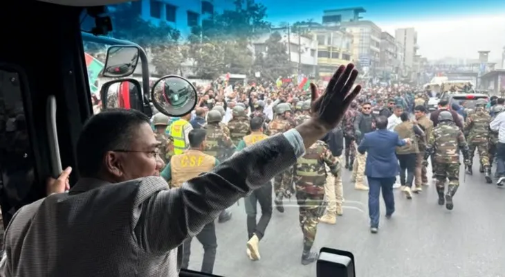নিউজ ডেস্ক: হযরত শাহজালাল আন্তর্জাতিক বিমানবন্দর থেকে বের হয়ে পূর্বাচলের ৩০০ ফিটের সংবর্ধনা মঞ্চের দিকে রওনা হয়েছে বিএনপির ভারপ্রাপ্ত চেয়ারম্যান তারেক রহমানের গাড়ি বহর। বিমানবন্দরের আনুষ্ঠানিকতা শেষ করে দুপুর ১টা ২২ মিনিটে তার গাড়ি বহর বিমানবন্দরের কাছে কাওলা বাস স্ট্যান্ড এলাকা পার হয়ে ৩০০ ফিটের সেই সুবিশাল মঞ্চের দিকে আগাচ্ছে।