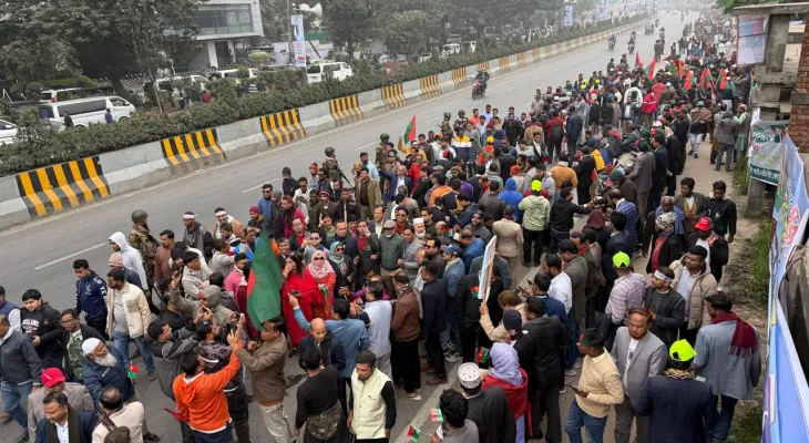 নিউজ ডেস্ক: নির্বাসনের দীর্ঘ ১৭ বছর পর দেশে ফিরছেন বিএনপির ভারপ্রাপ্ত চেয়ারম্যান তারেক রহমান। তার স্বদেশে ফেরার এই মুহূর্ত ঘিরে মুহুর্মুহু স্লোগানে প্রকম্পিত হয়ে উঠেছে রাজধানীর ৩০০ ফিট এলাকা। দলীয় পতাকা-ব্যানার হাতে এক অনন্য উচ্ছ্বাসের পরিবেশ সৃষ্টি করেছেন নেতাকর্মীরা।