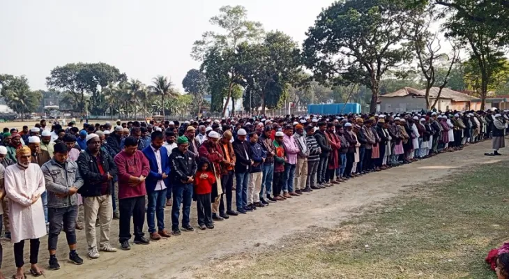 মমিনুল ইসলাম রিপন: রংপুরে সাবেক প্রধানমন্ত্রী ও বিএনপি’র চেয়ারপার্সন বেগম খালেদা জিয়ার গায়েবানা জানাজার নামাজ হয়েছে। বিএনপি’র প্রতিষ্ঠাকালীন সদস্য রিটা রহমানের উদ্যোগে বুধবার (৩১ ডিসেম্বর) বাদ যোহর কালেক্টরেট ঈদগাহ্ মাঠে অনুষ্ঠিত গায়েবানা জানাজার নামাজে ইমামতি করেন নজিরহাট বায়তুল ফালাহ জামে মসজিদের ইমাম হাফেজ মাওলানা মোঃ হামিদুল ইসলাম।